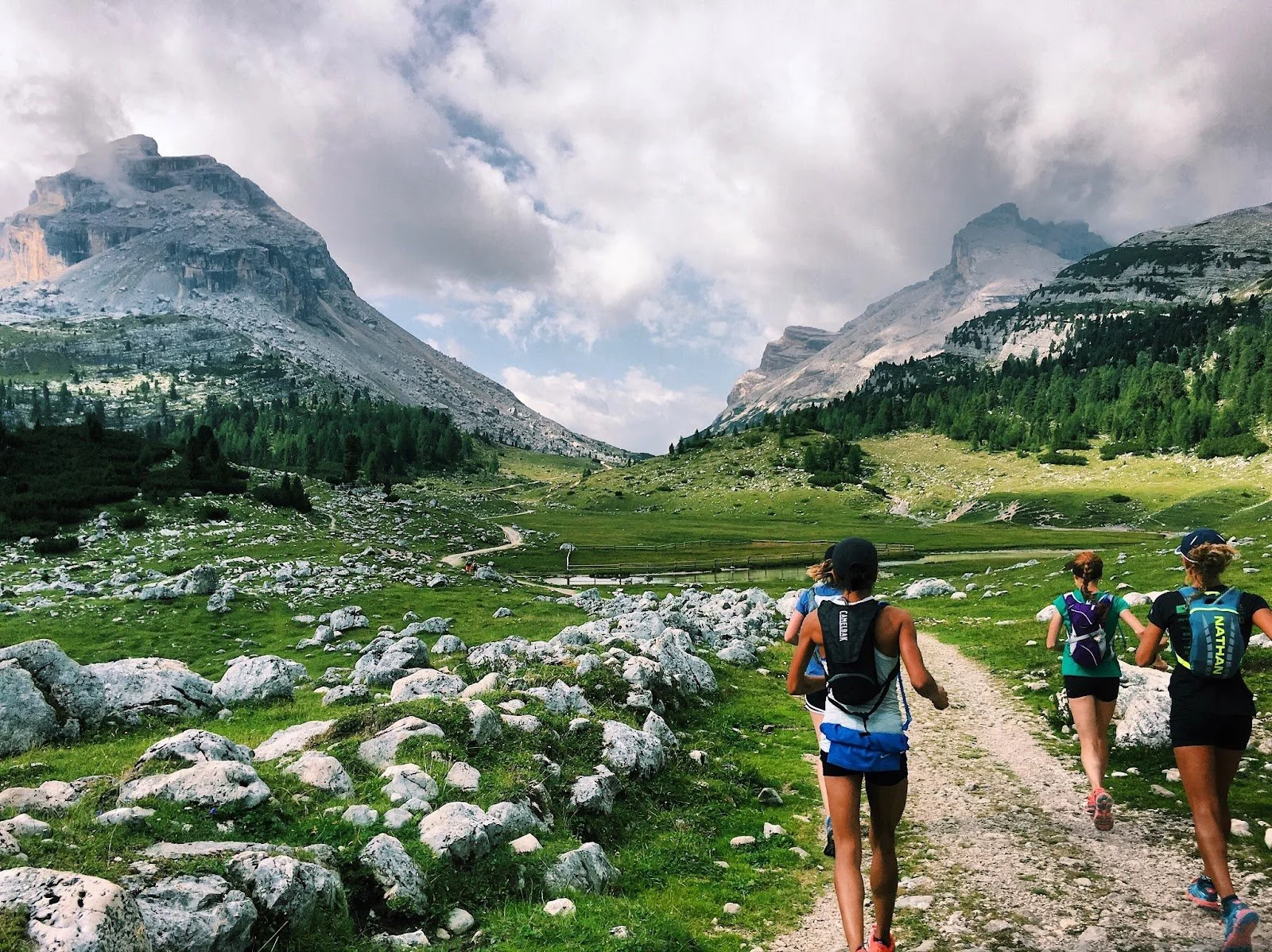 LOCATION & ROUTE: The scenery along the route we covered was unreal. It very much felt off the beaten track (despite it being a well-traversed route in the Dolomites). Lots of single track and very technical terrain. Prioritize ankle strength…you will thank me later! The climbs were no joke…lots of hiking on those (yet some more experienced folks were able to run parts of it) and some very steep downhills that weren’t very runnable. Be prepared to not be running this entire route…I’d say 50/50 run/hike…maybe 65/35 if you can run some of the climbs.